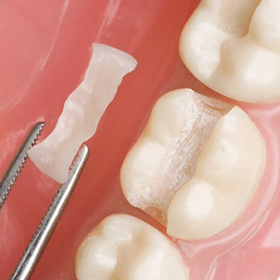 Then he will re-shape the remaining cavity, so the dentist can take an impression with ease and place your temporary inlays/onlays.